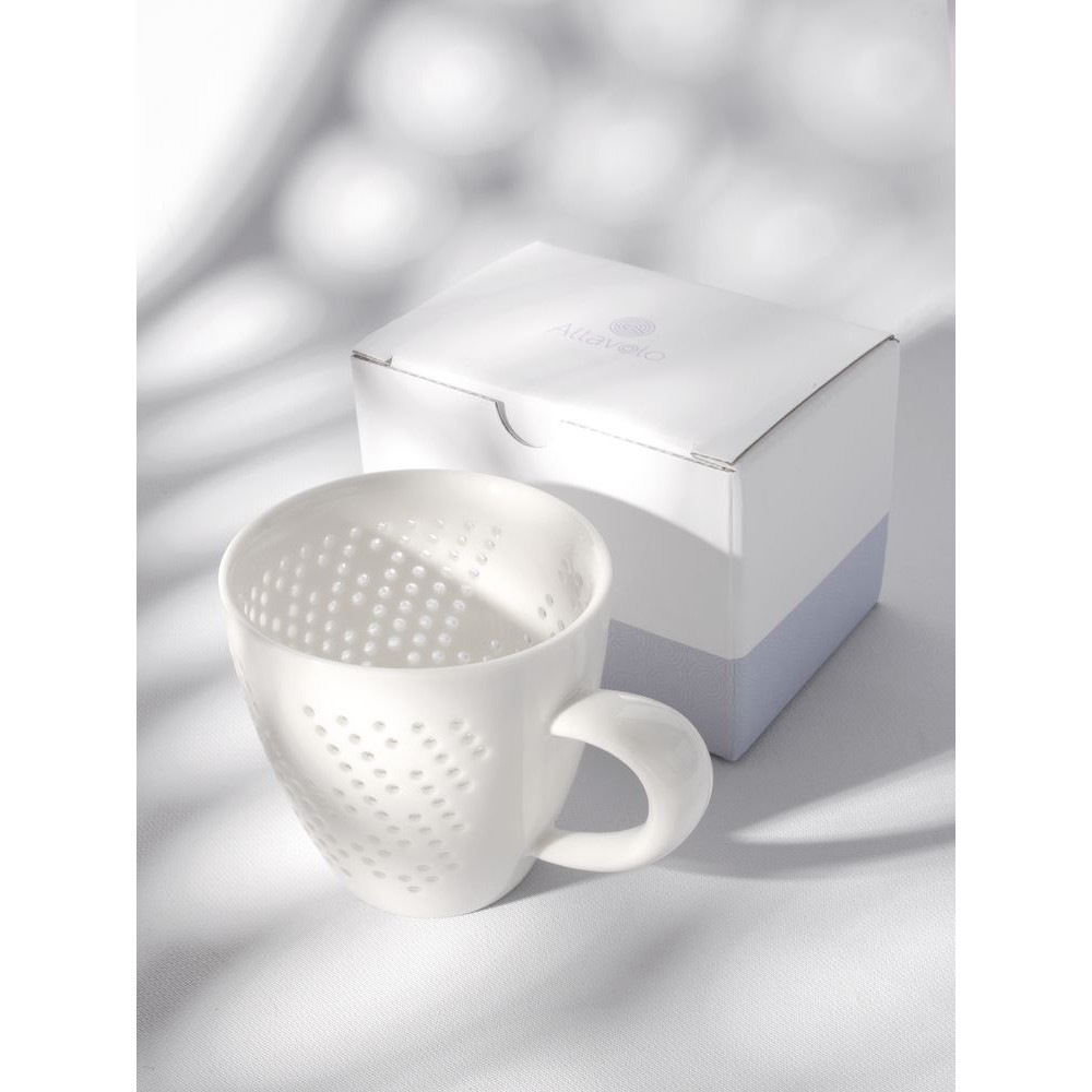 Чашка Coralli Rio — легкая, словно светящаяся изнутри посуда с легендарным узором «рисовое зерно». Благодаря тонкому слою прозрачной глазури кружка выглядит кружевной и ажурной, при этом напиток гарантированно остается внутри.