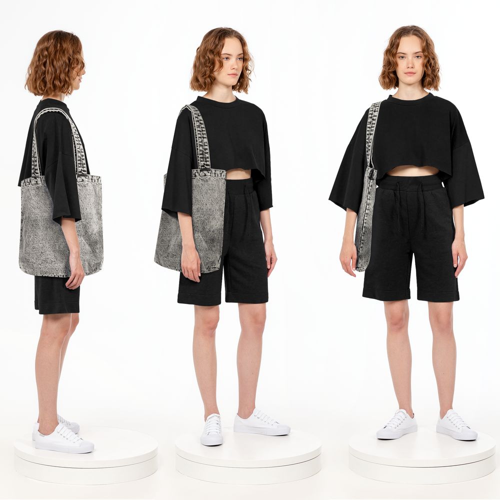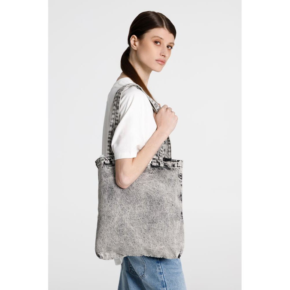 Базовый шопер из джинсовой ткани разработан в рамках единой коллекции и легко собирается в комплекты. Специально спроектированные лекала и технологии пошива открывают простор для любых вариантов кастомизации и нанесения изображений. На видимой части изделий нет лейблов с айдентикой бренда, а название бренда с уходника легко удалить.