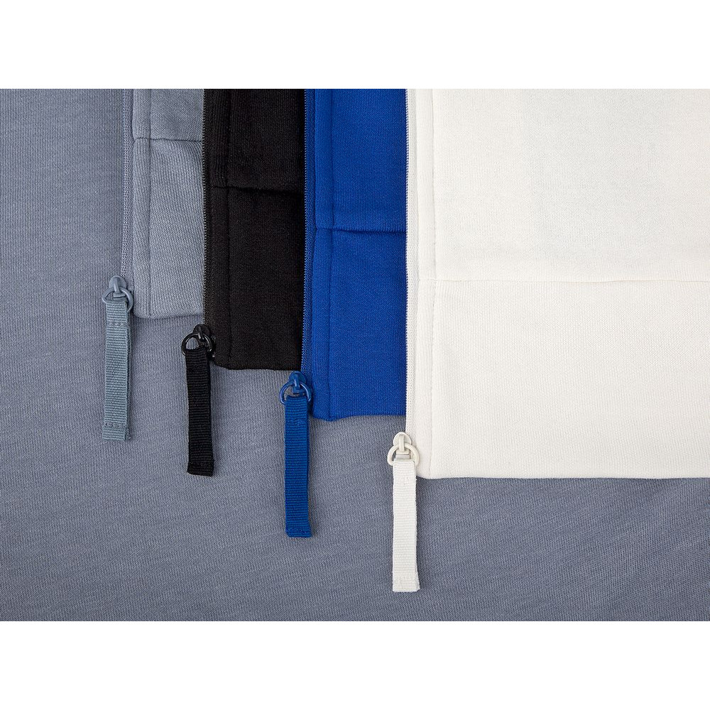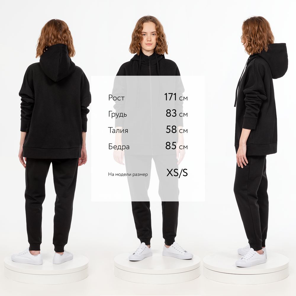 Толстовка унисекс на молнии со спущенным плечом.