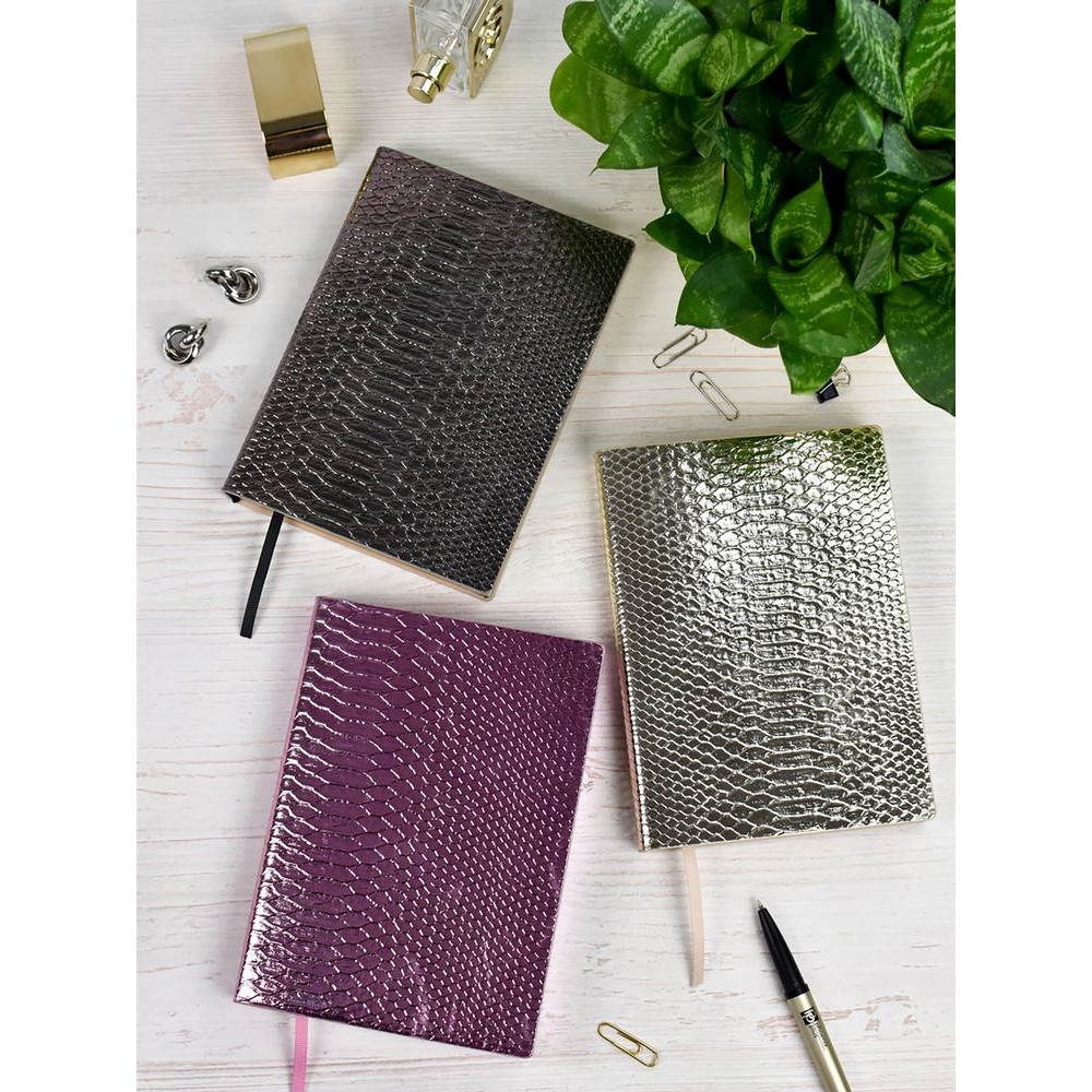 2025 год вдохнет новую жизнь в знаменитый змеиный принт, а коллекция ежедневников Anaconda напомнит о его невероятной притягательности и вне модных показов. Заманчивые переливы и имитация змеиной кожи: Anaconda непременно вызывает желание прикоснуться к рельефной обложке, а еще — добавить немного змеиной мудрости и нотку легкой загадочности в офисные дела.