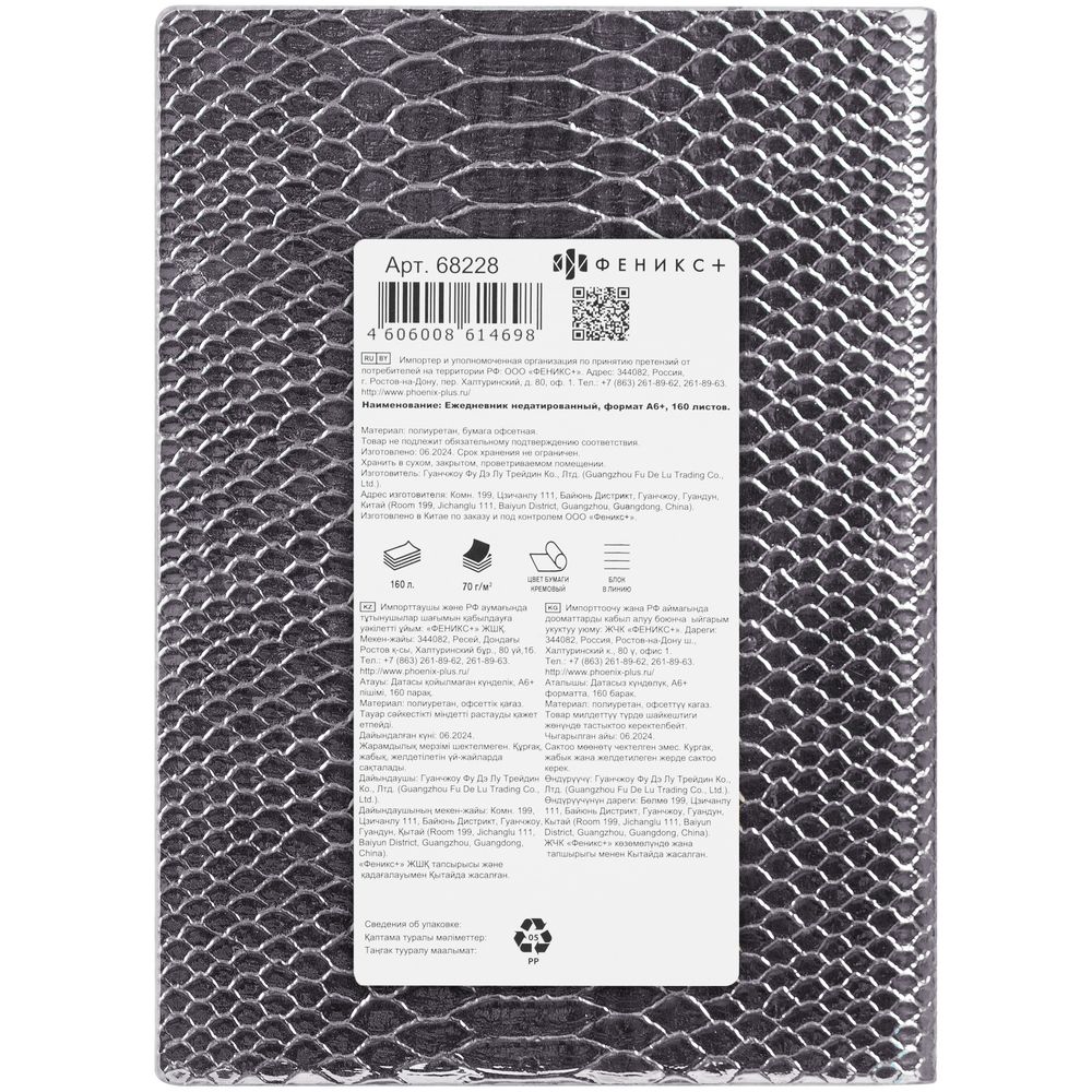 Ежедневник Anaconda, недатированный, серебристый