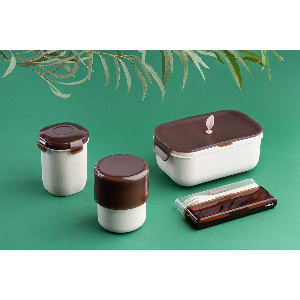 Контейнеры и столовые приборы greenMeal изготовлены из композитного материала с добавлением шелухи рисового зерна, что сокращает потребление синтетических полимеров.