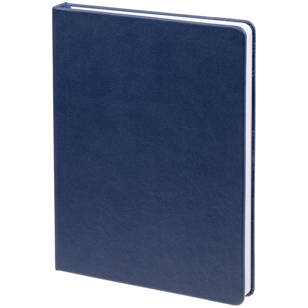 Ежедневник с твердой обложкой. Выполнен из материала Latte, темно-синий, дополнен ляссе в цвет обложки.
