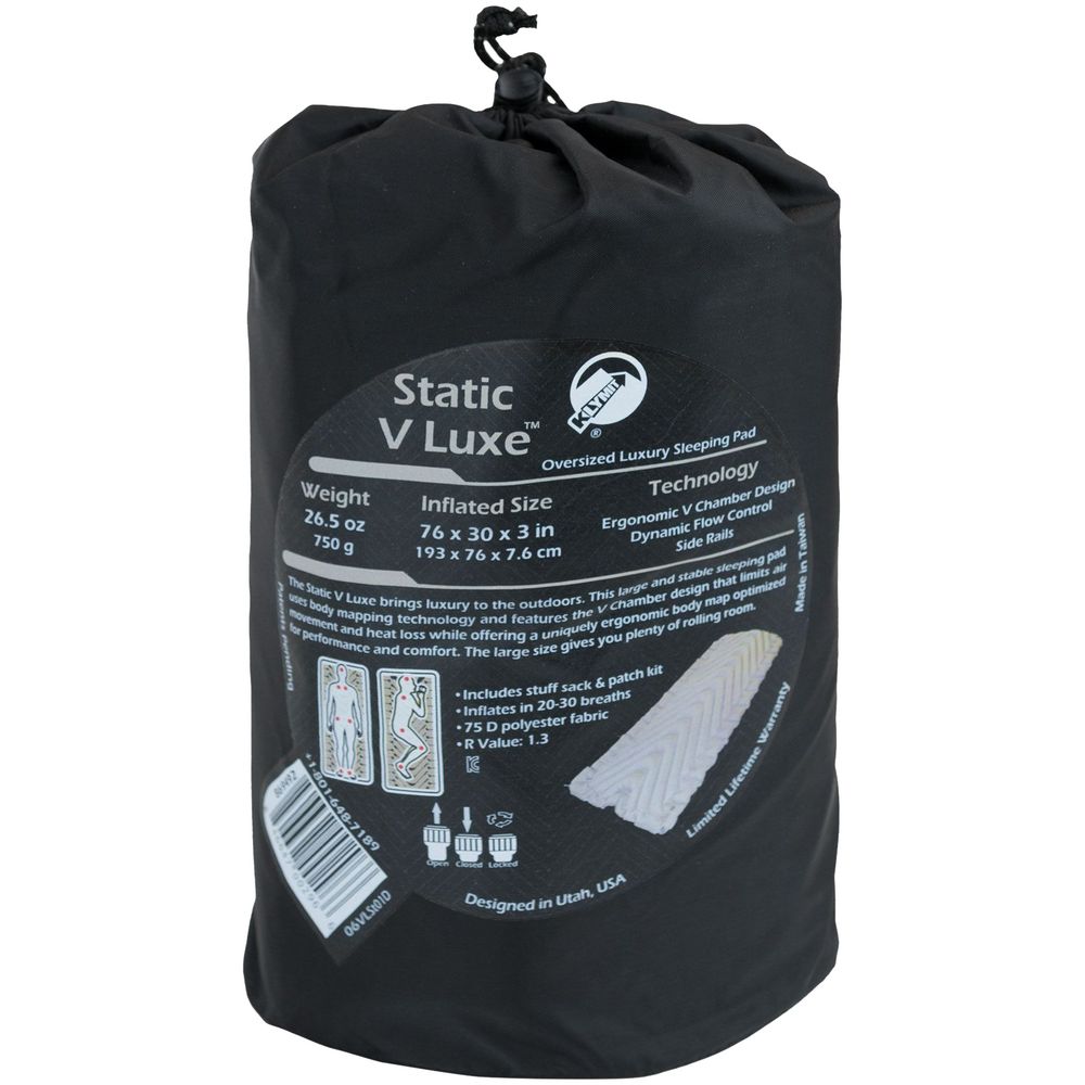 Ультралегкий коврик Static V Luxe увеличенной ширины с анатомическим дизайном и плюшевой поверхностью создает ощущение отдыха на домашней кровати. Экономит время и энергию за счет быстрой системы надува. Подходит для использования на земле и в палатке.