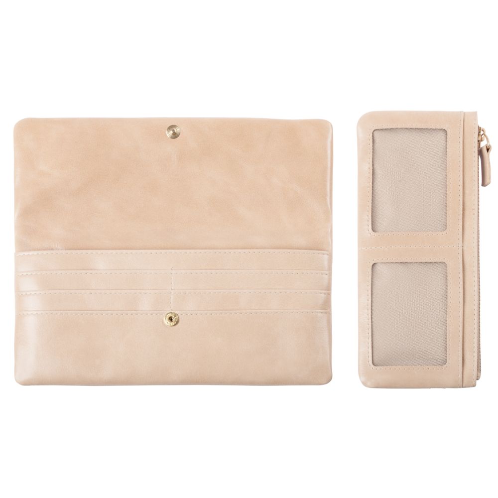 Кошелек имеет съемную внутреннюю вставку. На ней расположены карманы для карт и отделение на молнии.