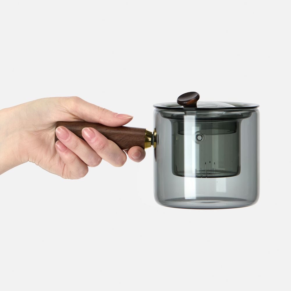Проводник в мир спокойствия — чайник-ковш Hazy. Его мягкие линии, приглушенные цвета, стильная комбинация стекла и дерева создают атмосферу туманного утра, когда хочется укутаться в плед и насладиться чашкой горячего чая. Стеклянное сито с узкими прорезями поможет заварить чистый чай без чаинок, а эргономичная ручка — с удобством использовать чайник, не боясь обжечься.
