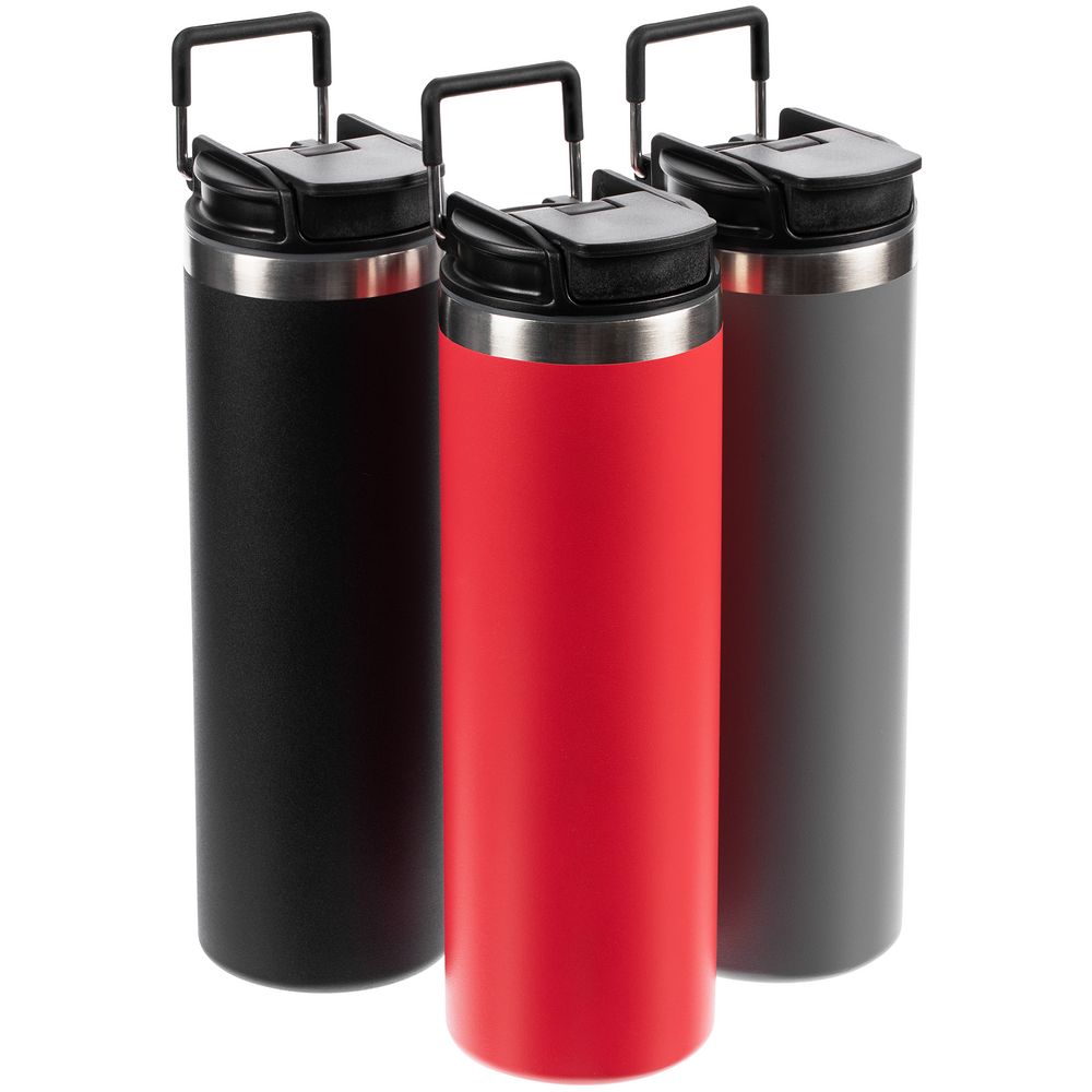 Лаконичный дизайн с ровным цилиндрическим корпусом — специально для круговой печати и гравировки, достаточный объем и привлекательная деталь в виде подвижной квадратной ручки для переноски.