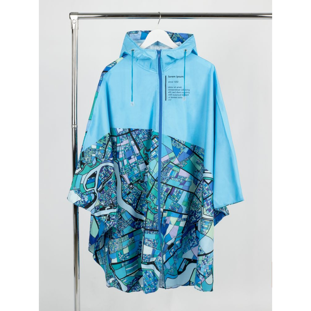 Легкий городской дождевик-пончо с регулируемым капюшоном из влагоустойчивого материала подходит для защиты в непогоду, свободно одевается поверх одежды и небольшого рюкзака.