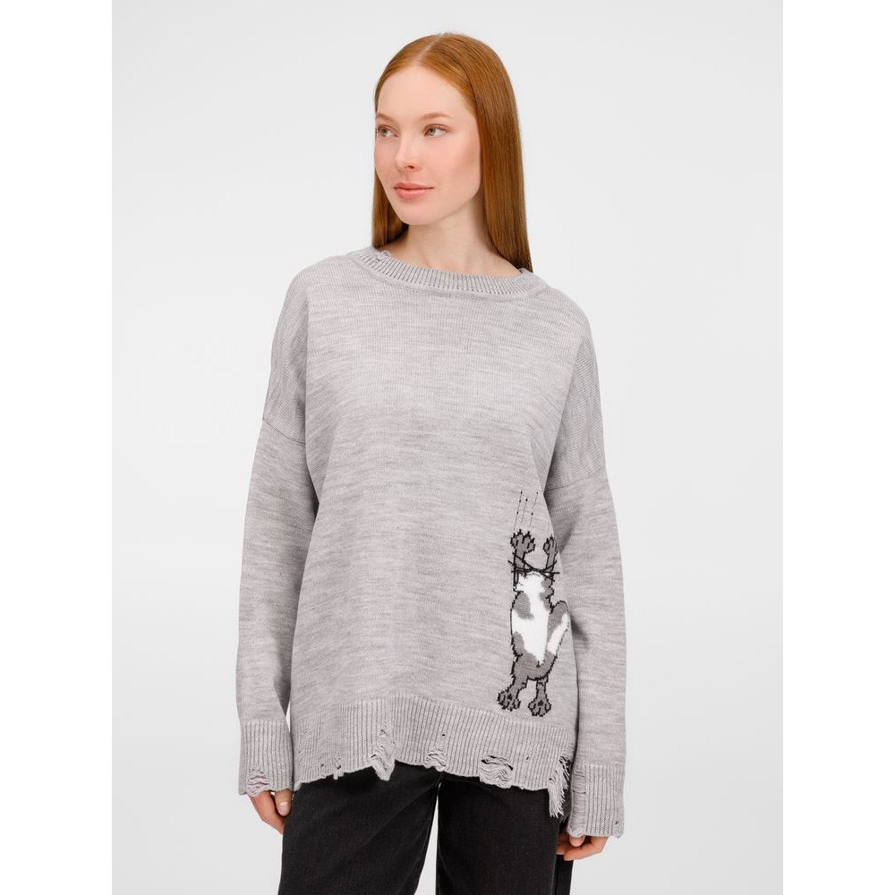 В дизайне мягкого джемпера с круглым вырезом Sharpick гранж-эстетика органично сочетается с милым акцентом — пушистым рисунком в виде озорного котика. Получается веселая вариация на тему того, откуда берется модная рваная одежда, а джемпер моментально создает настроение легкой несерьезности. Рваные края изделия добавляют современную нотку, а резинка на вороте, манжетах и по низу обеспечивает удобную посадку.