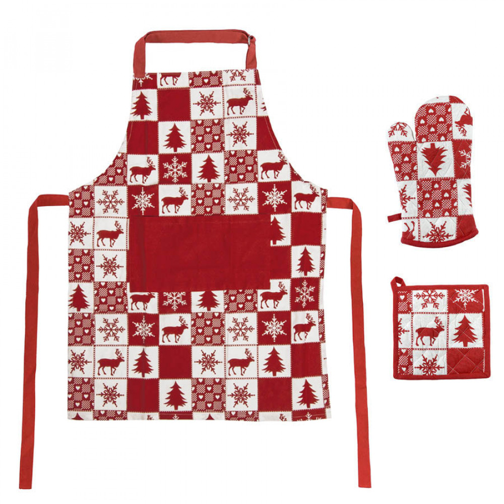 Состав набора: 1) Фартук 2)Прихватка-рукавица 3)Прихватка прямоугольная
