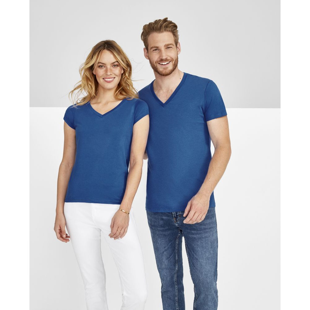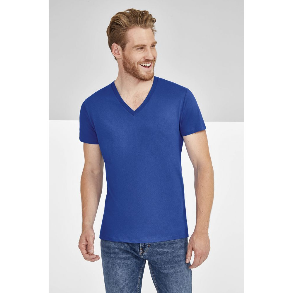 Модная мужская футболка с глубоким V-образным вырезом, отделанным резинкой 1*1, подойдет как для промо-акций, так и в качестве корпоративной униформы. Полугребенной 100% хлопок, двойная прострочка на рукавах и по низу изделия, укрепляющая тесьма по вороту.