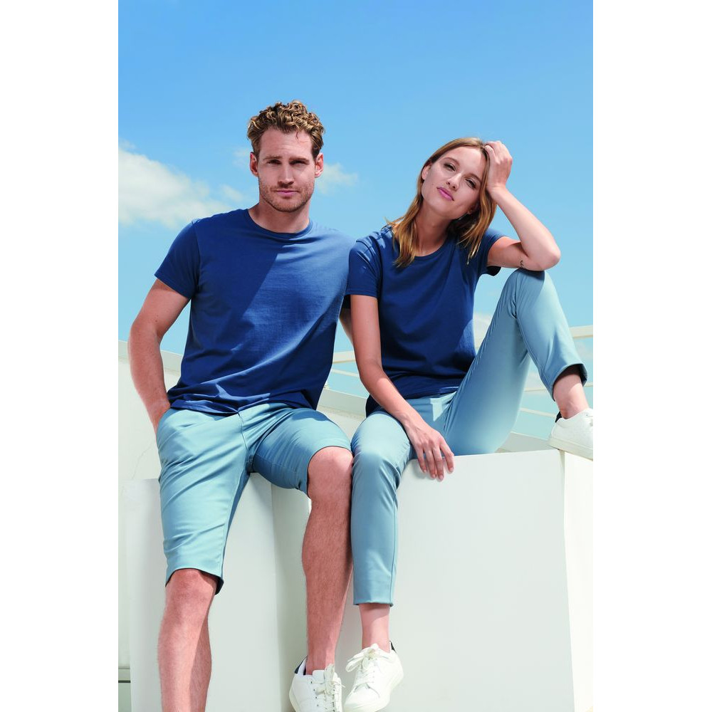 Женская бесшовная облегающая футболка из органического хлопка с круглым вырезом.