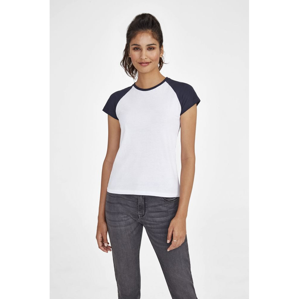 Футболка женская Milky 150, белая с темно-cиним 903 ₽