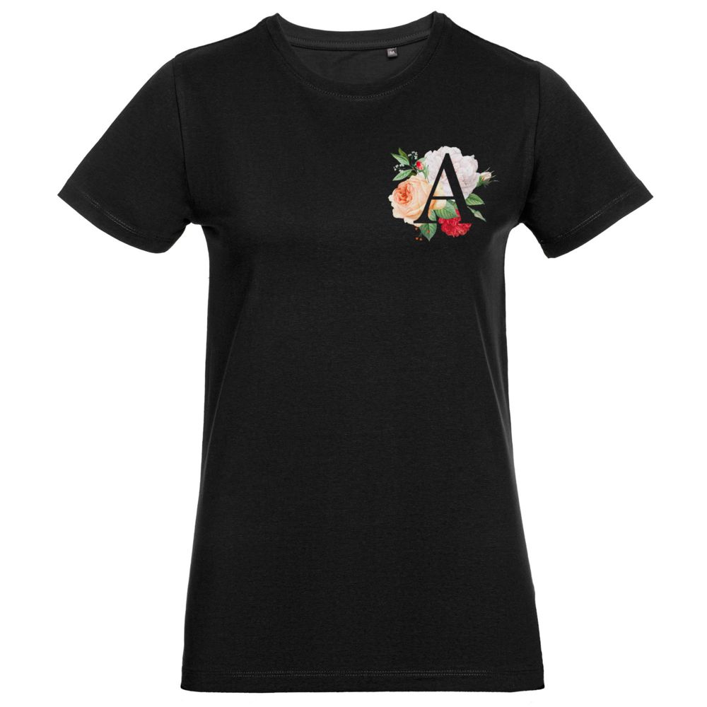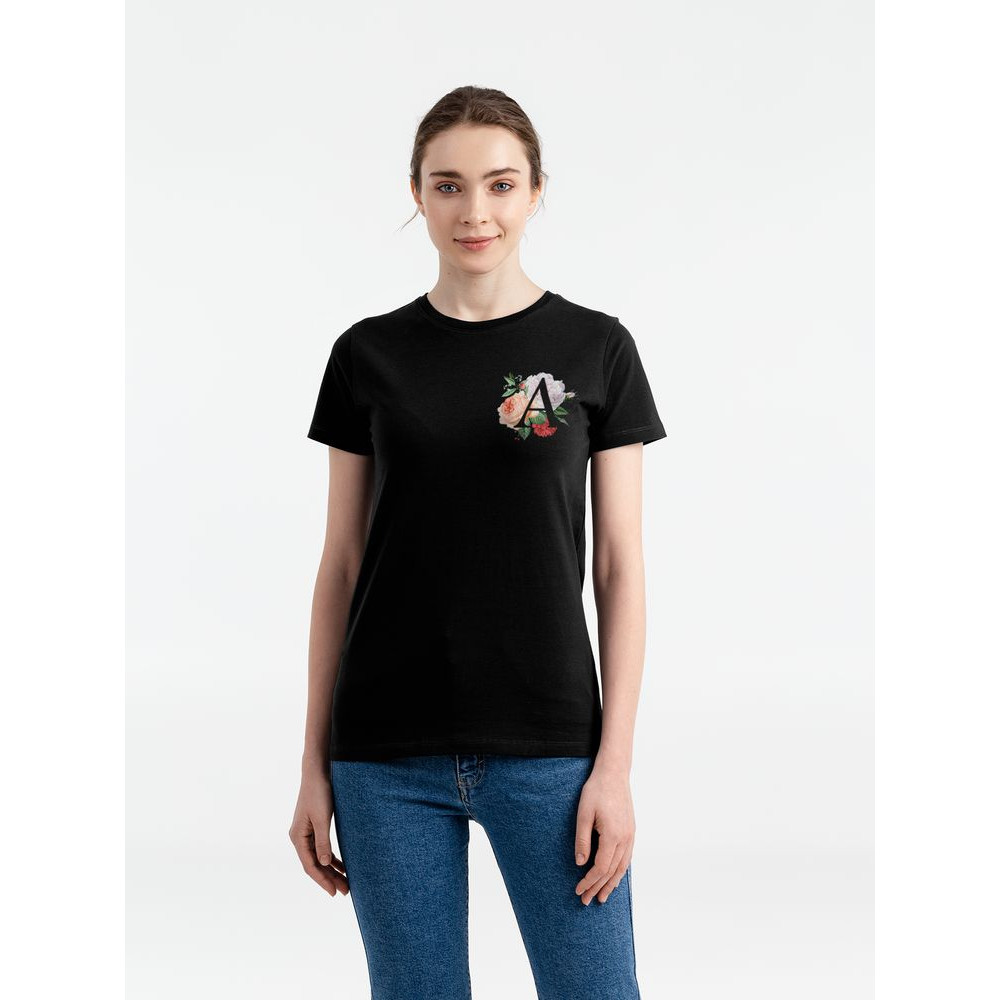 • Футболка женская «Цветочная азбука: А», черная