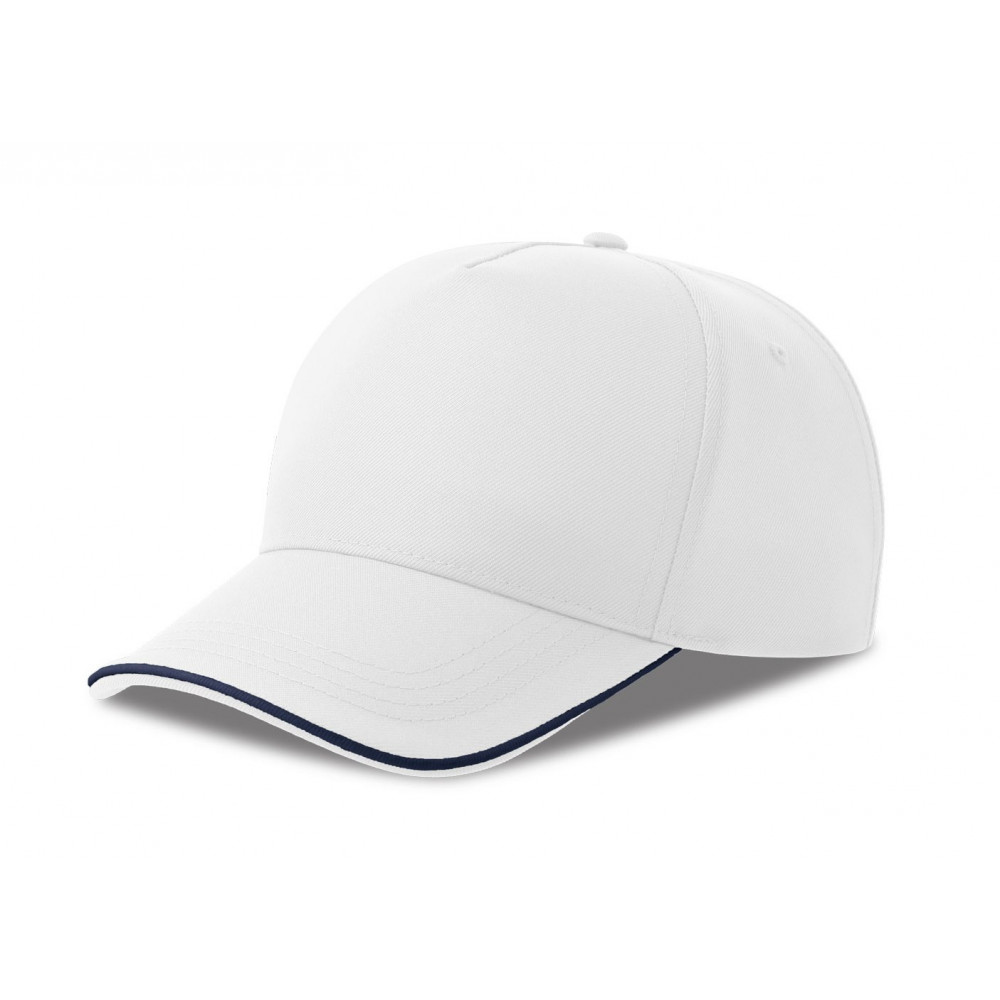 Бейсболка RECY FIVE PIPING, 5 клиньев, застежка-липучка, белый/тёмно-синий, 100% полиэстер, 220 г/м2