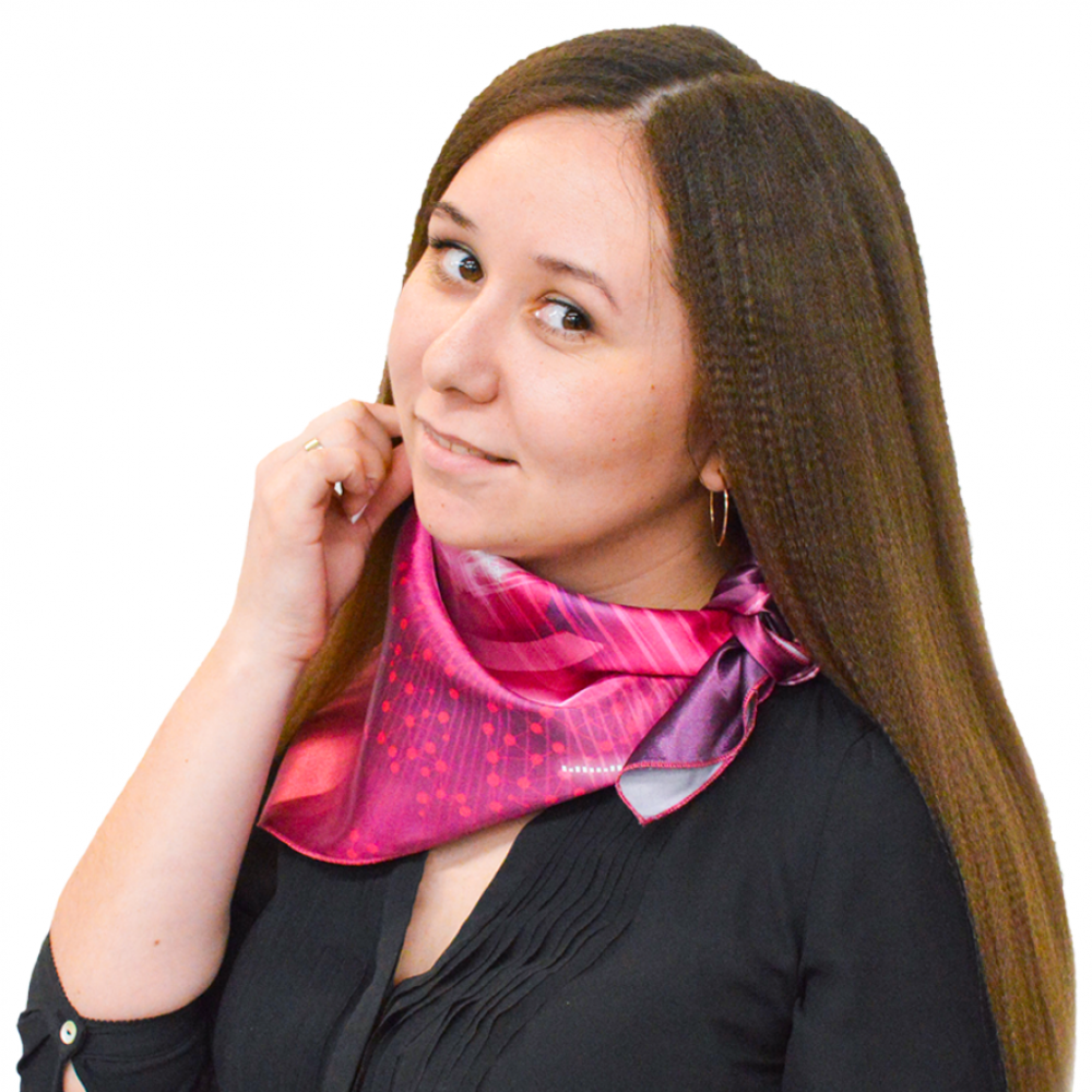 Платок изготовлен из атласных тканей, включая шелк, атлас и крепсатин. Эти материалы обеспечивают невероятную мягкость и блеск, что делает платок стильным аксессуаром. Но главное, наш платок может быть полностью запечатан методом сублимации, что гарантирует яркую и долговечную печать.