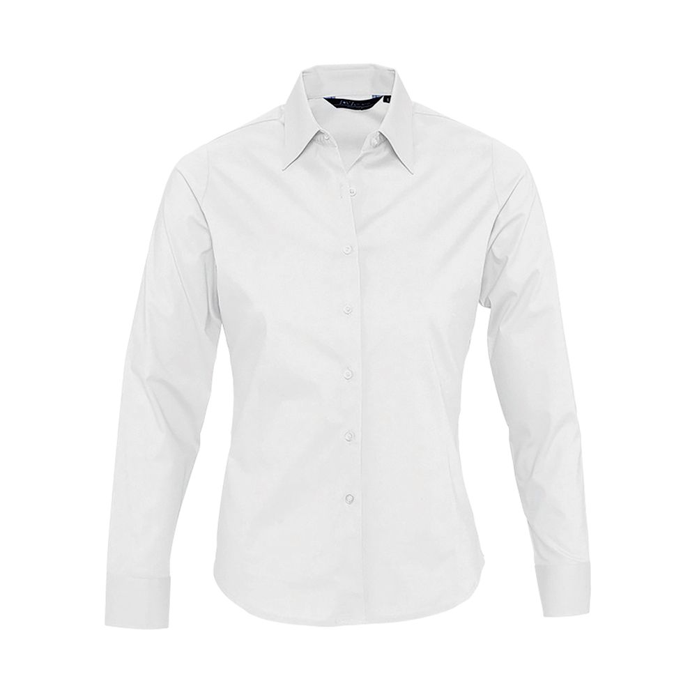 Рубашка приталенного кроя с воротником на одной пуговице. Планка на 7 пуговиц в тон, манжеты на 2 пуговицах, вытачки спереди и на спинке.