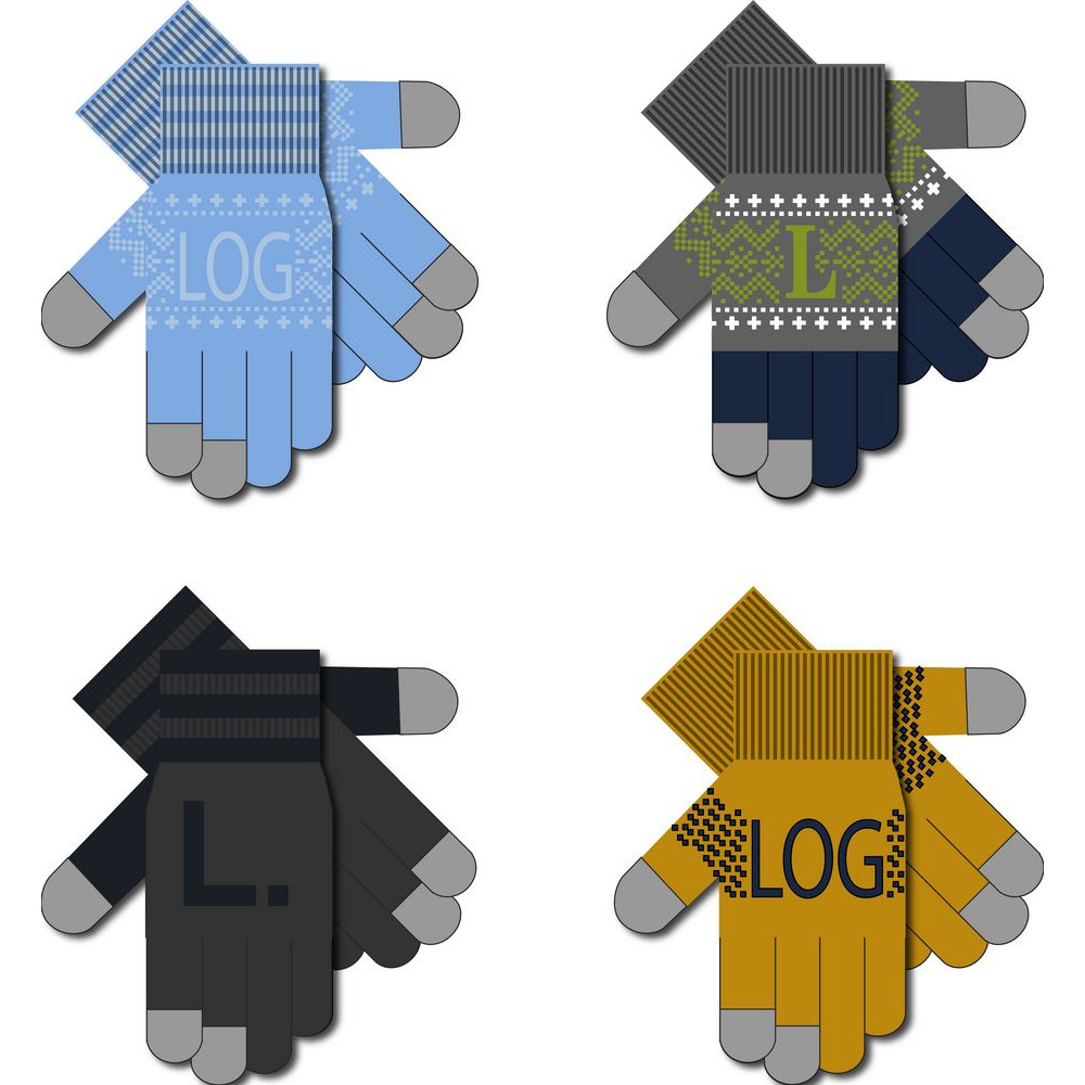 Модель: цельновывязанные бесшовные перчатки с эластичной манжетой и жаккардовым узором в 2-3 цвета. Три пальца: средний, указательный, большой — вяжутся с использованием токопроводящей нити. Манжета может быть полосатой (только горизонтальные полосы 1-2 цветов, без узора и логотипа).