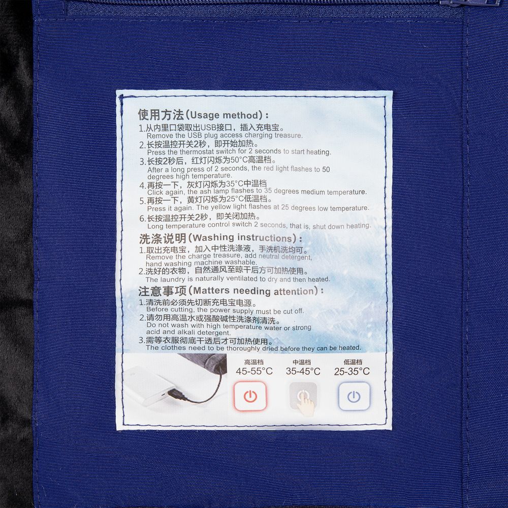Утепленная куртка со встроенным нагревательным элементом из углеродного волокна в области спины и карманов. Работает от внешнего аккумулятора (в комплект не входит), подарит ощущение тепла и комфорта в любую погоду.