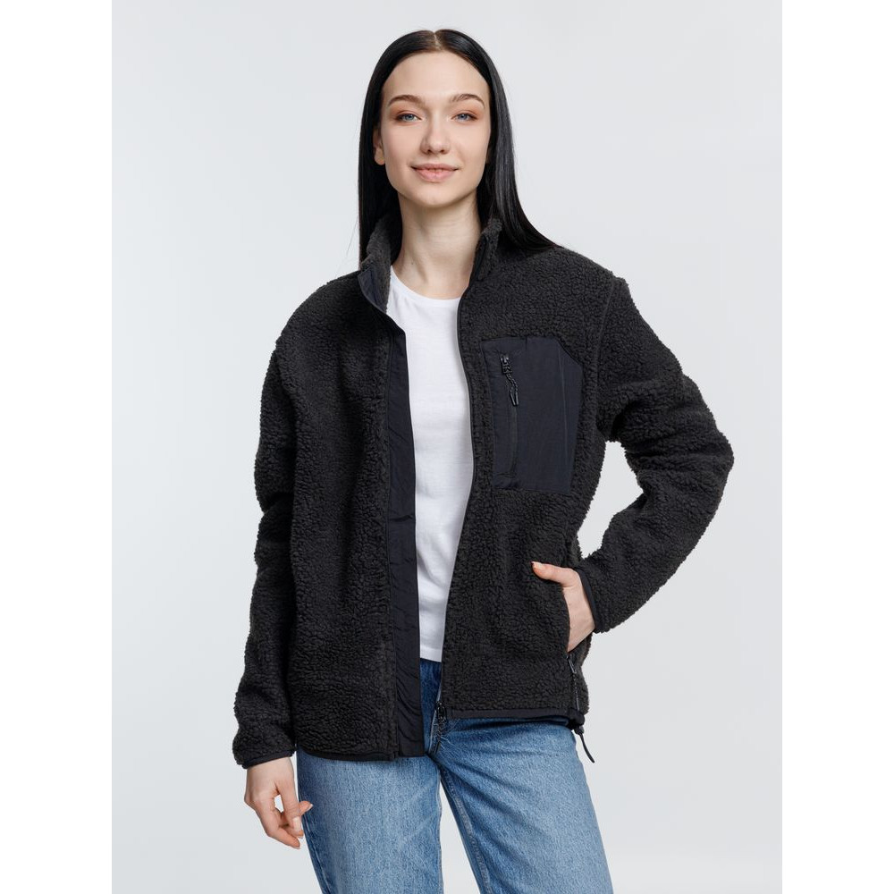 Куртка унисекс из фактурной искусственной шерпы с гладкой отделкой из таслана.
