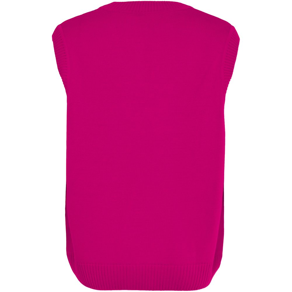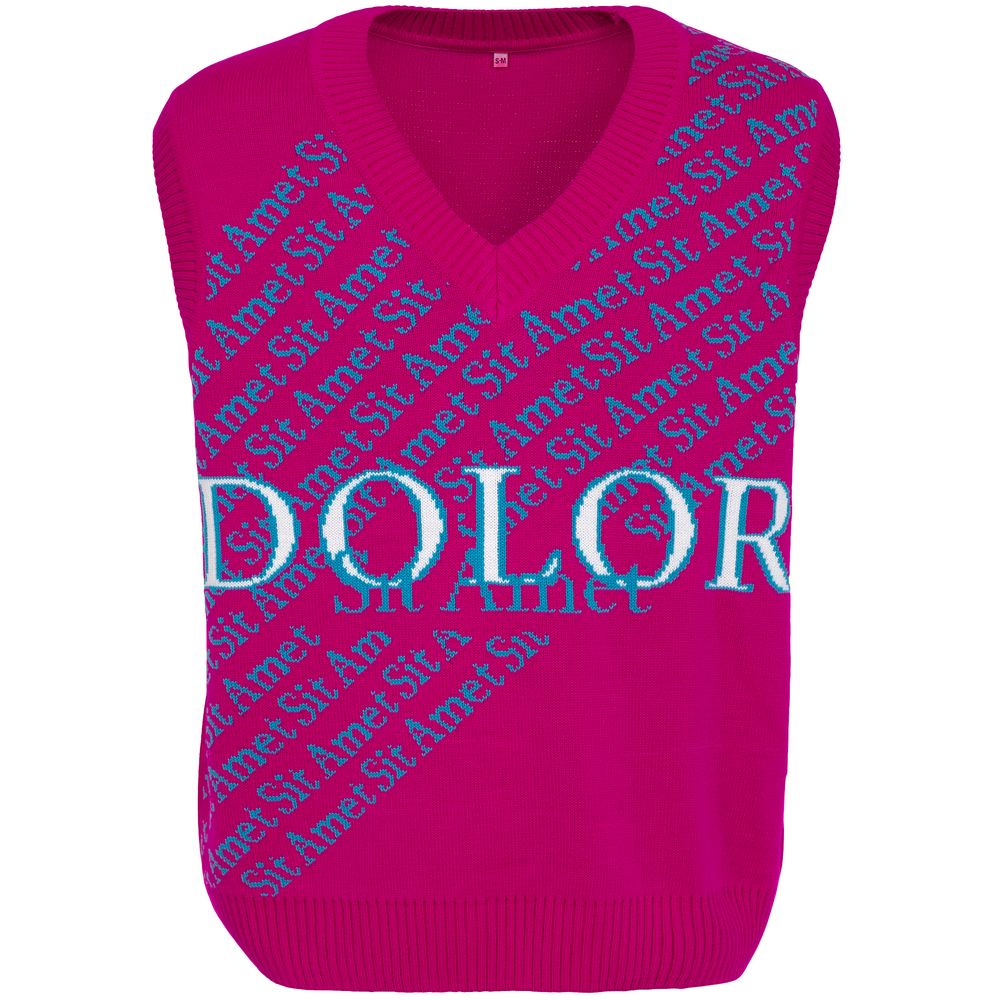 Модель: жилет жаккардовой вязки, 2–3 цвета нитей, спущенное плечо, крупная петля. На бейках горловины и проймы возможна отделка в виде контрастных полос (не более 3-х цветов).
