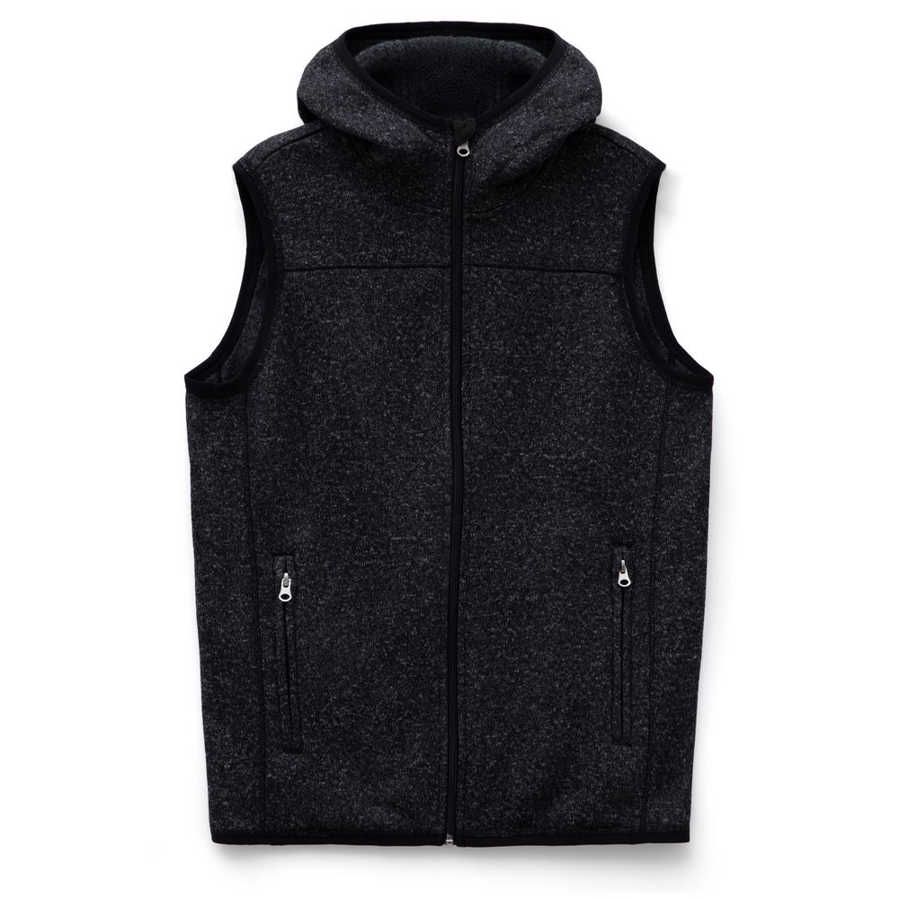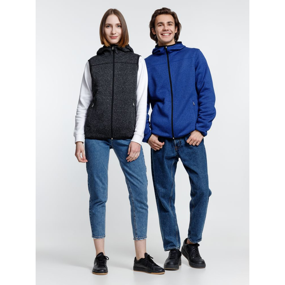 Вязаный жилет унисекс на молнии с капюшоном.