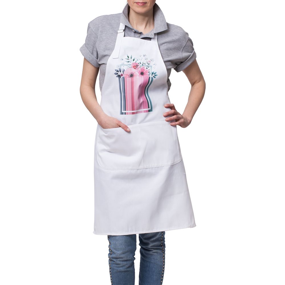 Фартук с регулируемой лямкой и двойным карманом.