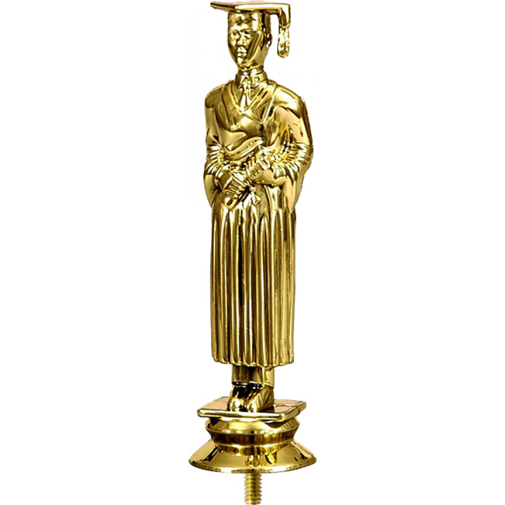 Фигурка пластиковая "Выпускник". Цвет золото. Высота 13 см. Изображен юноша, одетый в мантию и четырехугольную шляпу с кисточкой. Фигурка установлена на стеме в виде небольшого элемента конусообразной формы. Фигурку возможно закрепить на цоколь, постамент или кубок.