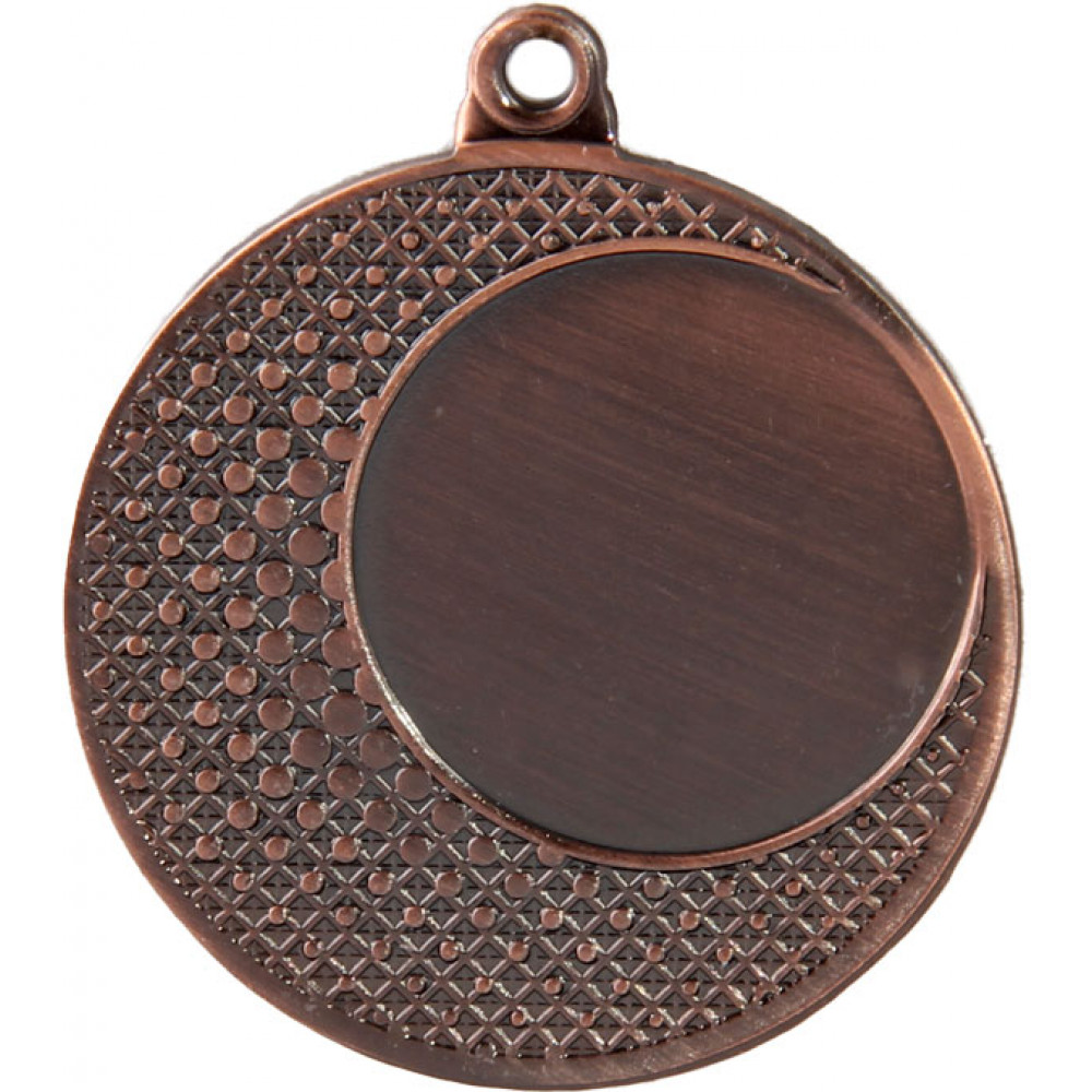 Медаль круглая металлическая, изготовлена из недрагоценного металла. Диаметр 40 мм, толщина 1,5 мм. Цвет медали, имитирующий золото/серебро/бронзу. Сверху расположено круглое ушко диаметром 5 мм для крепления ленты с карабином.¶Аверс медали - в правой верхней части расположено место под вкладку, диаметром 25 мм, имеющее тонкий кант, соприкасающийся с основным краем медали. По всему полю медали, кроме места под вкладыш, располагаются многочисленные точки (маленькие кружочки) диаметром около 1 мм каждый, уменьшающиеся к краю медали. Кружочки расположены на фоне едва заметных ромбиков. На медали нет никаких других изображений, нет рисунков, относящихся к конкретному виду спорта, нет обозначения места. Реверс медали – ровный, без выпуклости.