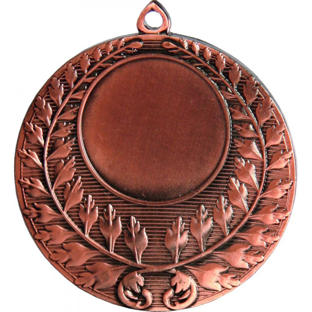 Медаль круглая металлическая. Диаметр 50 мм, толщина 3 мм.¶Цвет медали, имитирующий золото/серебро/бронзу.¶Сверху расположено круглое ушко для крепления ленты. ¶В центральной верхней части аверса расположено место под вкладку, имеет тонкий кант, диаметр 25 мм. Фон медали в виде тонких выпуклых горизонтальных линий. На медали расположены две лавровые ветви с ажурными листами, ветви отходят снизу и огибают место под вкладку с разных сторон. Внизу ветви связаны между собой.¶На медали нет никаких других изображений, нет рисунков, относящихся к конкретному виду спорта.
