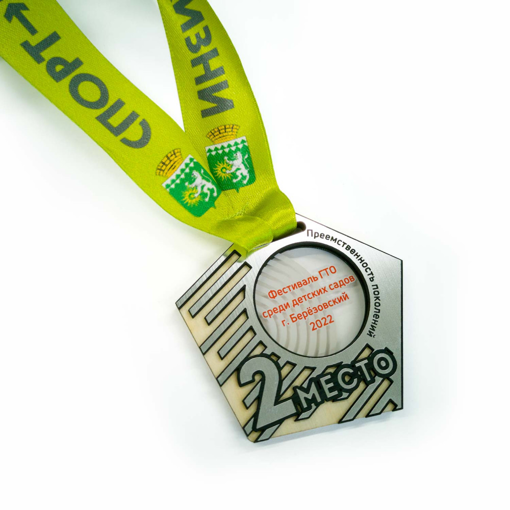 • Медаль из дерева с акрилом и пластиком 3-слойная, с УФ-печатью