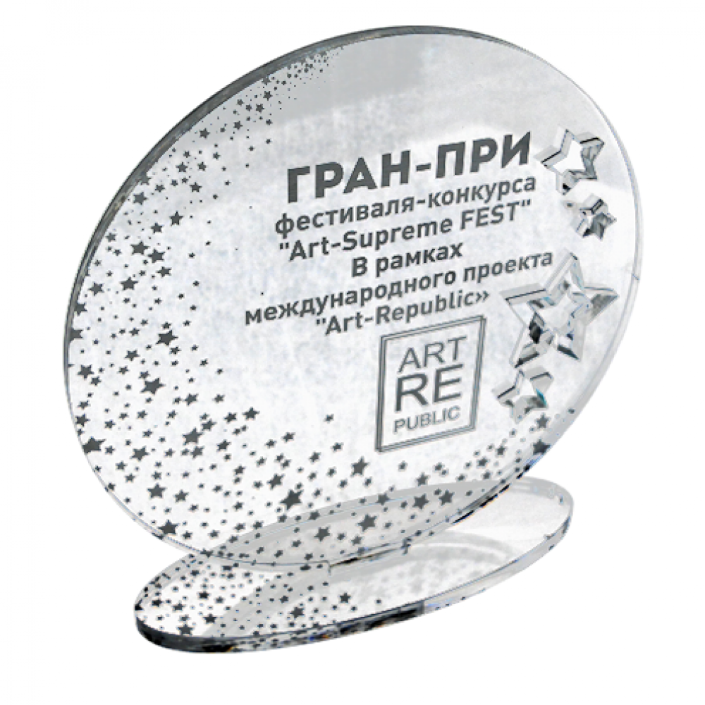 Приз изготавливается из акрилового стекла толщиной от 3 до 10 мм.