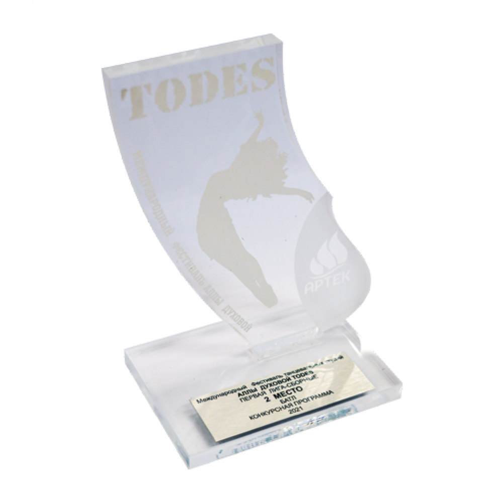 Приз состоит из основания и самой фигуры. Элементы изделия изготавливаются в два слоя - из акрилового стекла толщиной от 3 до 10 мм с последующей аппликацией пластиком толщиной 0,8, 1,6 или 3,2 мм. Цвет, размер и форма изделия могут быть любые.