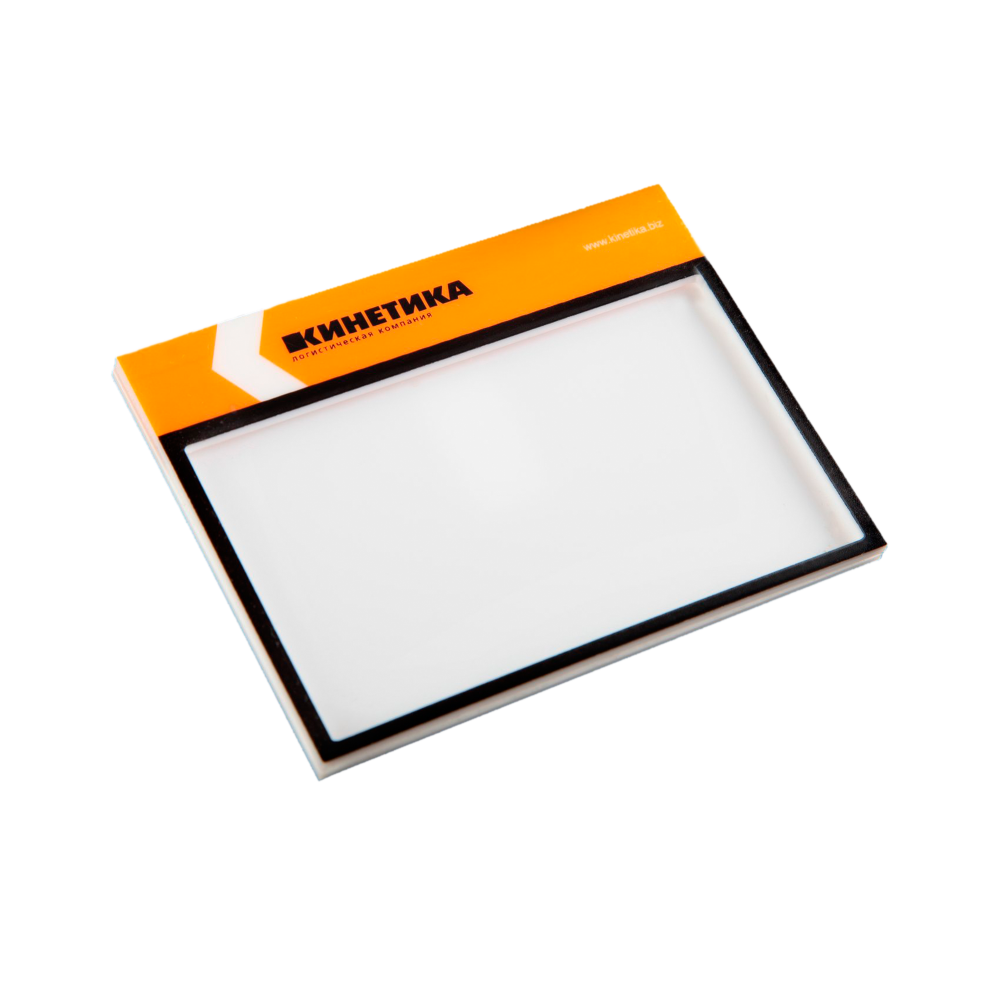 Материал бейджа – прозрачный или цветной акрил. Это практичный материал, стойкий к загрязнению и воде. Преимущество этого варианта – большой выбор цветов и оттенков акрила.