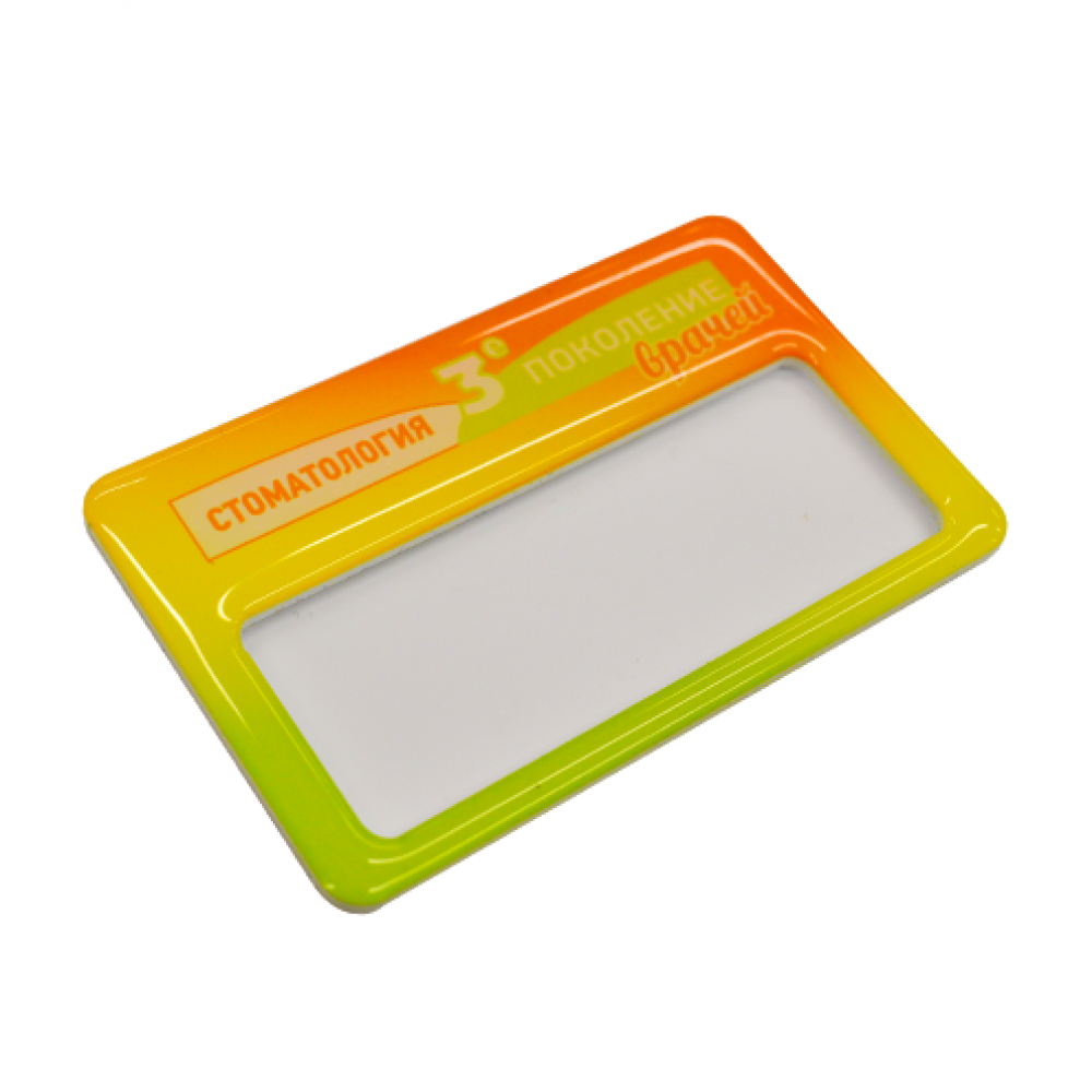 Метод нанесения изображения - УФ-печать. Отличительные особенности этого нанесения – полноцветная печать, яркие цвета, стойкость к истиранию. Дополнительно бейдж заливается специальной полимерной смолой, что создает эффект увеличения; придает изделию объем и оригинальность.