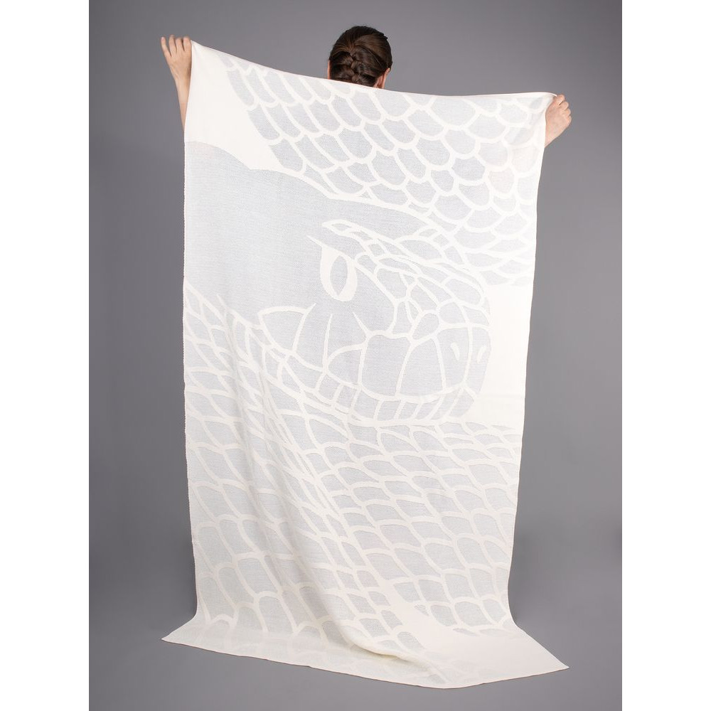 Плед Serpentica посвящен главной героине 2025 года — мудрой Змее, чья красота и гибкость тонко переданы в дизайне. В восточной культуре змея ассоциируется с долголетием, бессмертием и исцелением, а в мифологии разных народов часто выступает в роли помощника и защитника.