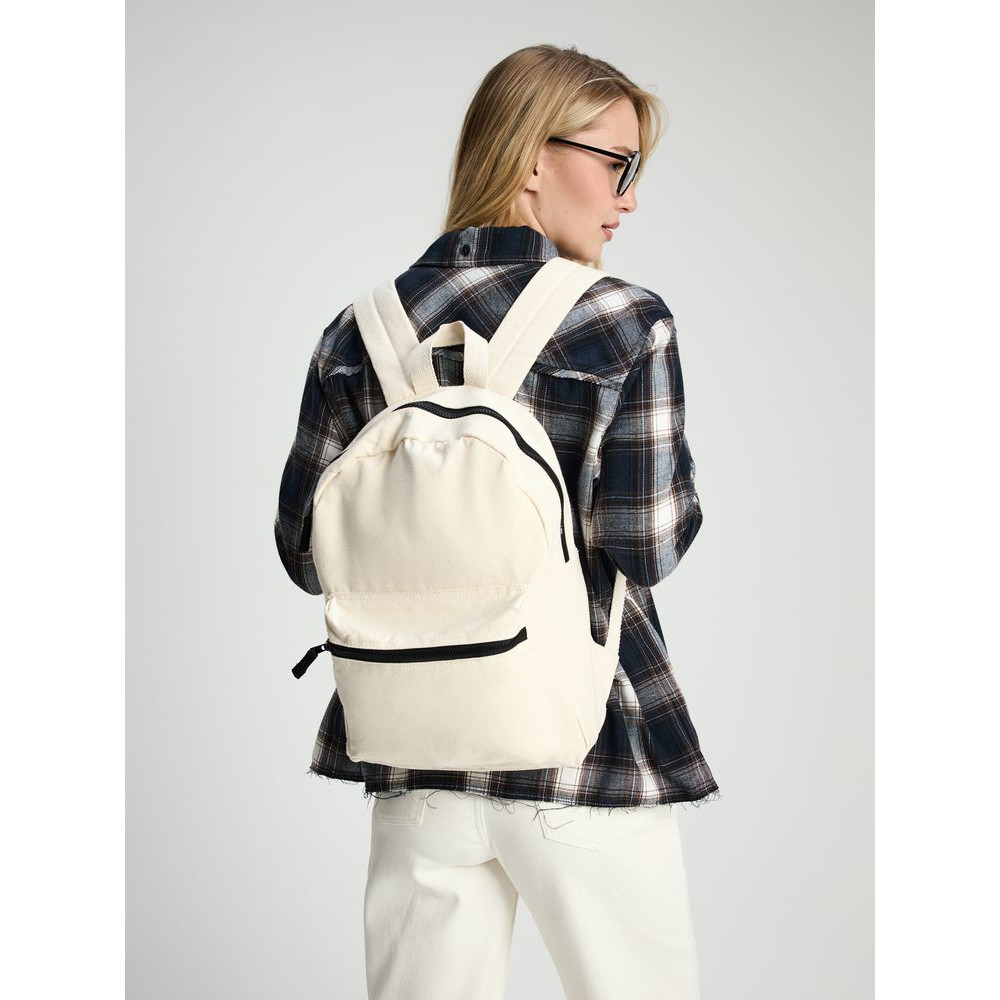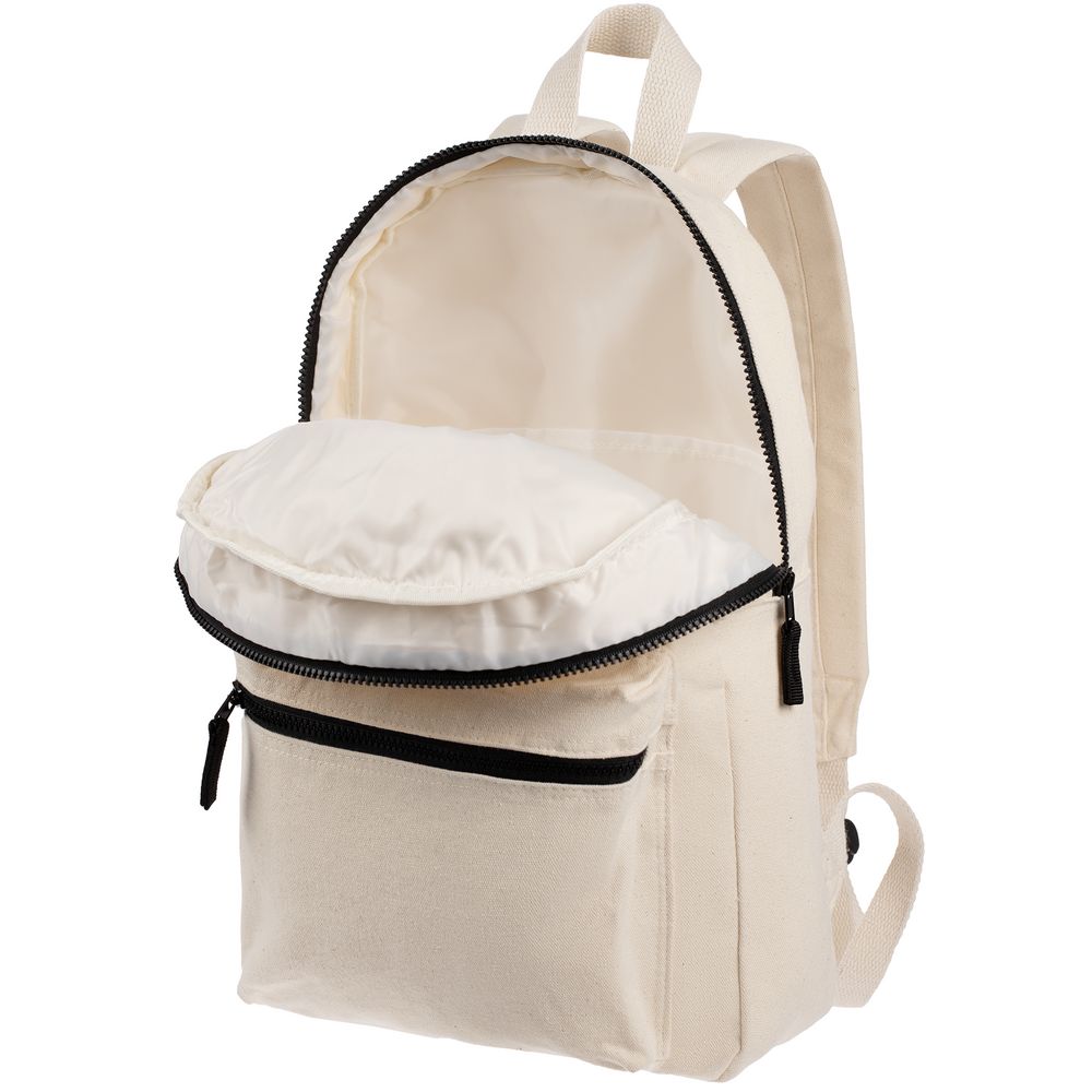 Легкий рюкзак в экостиле — из плотного неокрашенного хлопка с контрастными деталями.