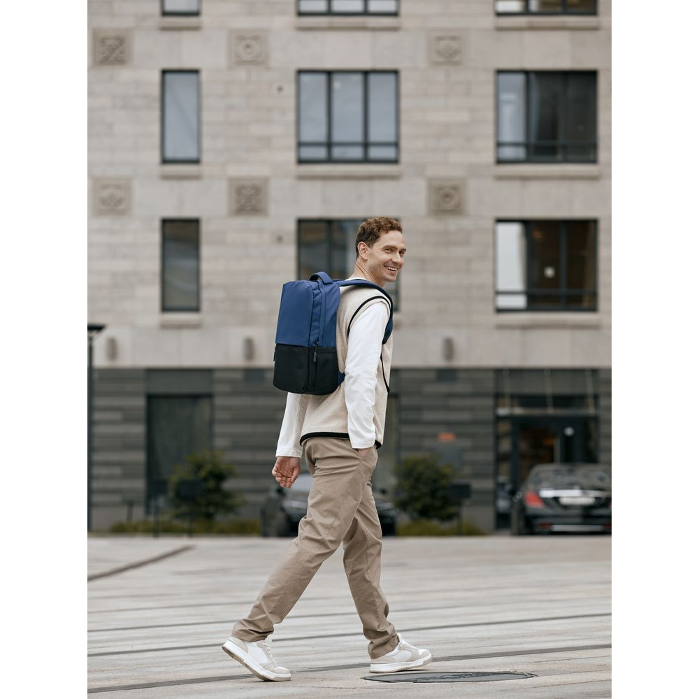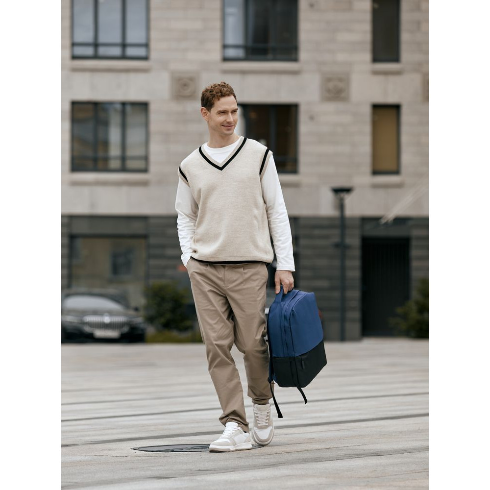 Двухцветное исполнение с темным низом и более светлым верхом, с одной стороны, помогает рюкзаку дольше сохранять опрятный внешний вид, а с другой — позволяет активнее и контрастнее выделить логотип компании.