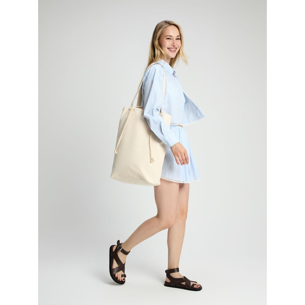 Сумка для покупок, закрывающаяся на утяжку со шнурком.