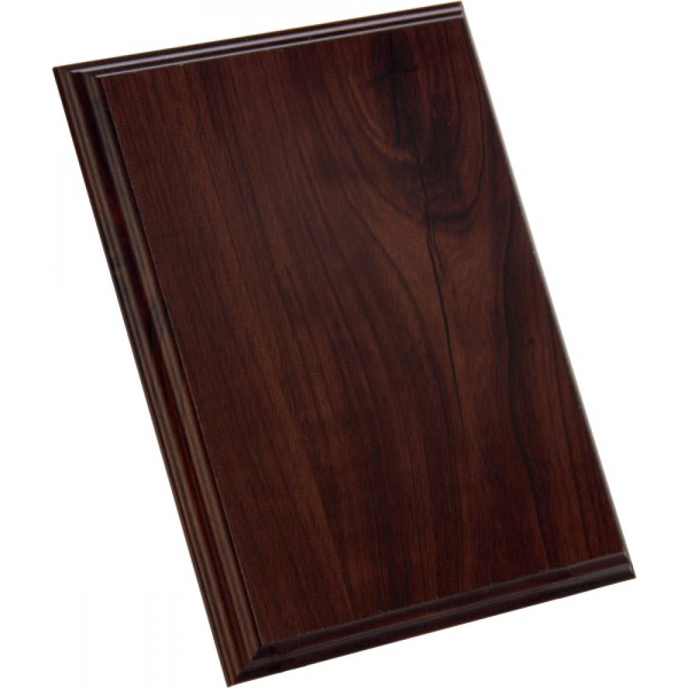 Плакетка деревянная в форме прямоугольника, цвет коричневый. По краям плакетка имеет небольшие ступеньки.