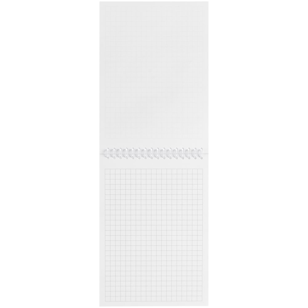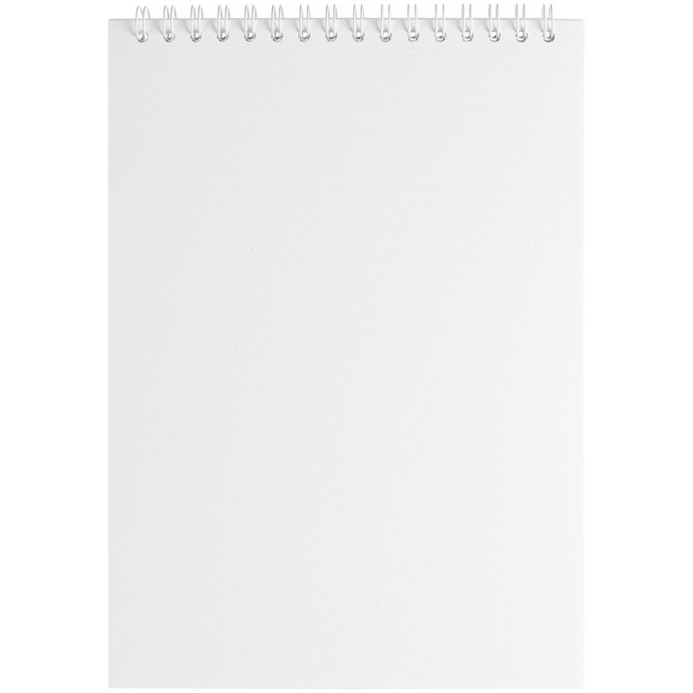 Блокнот на пружине с обложкой из белого мелованного картона плотностью 270 г/м² с покрытием софт-тач.
