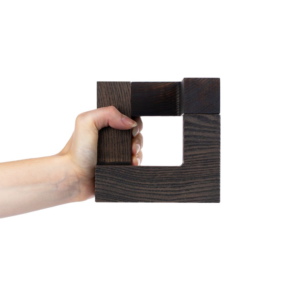 Продуманная конструкция из трех деревянных деталей на магнитах позволяет собрать необычный трехмерный куб, который в зависимости от угла зрения словно меняет свою форму. Потому такой стелой особо символично отметить уникальные качества и достижения награждаемого: профессиональные успехи, личные победы, огромный вклад в развитие команды и общества или нестандартный подход к решению задач.
