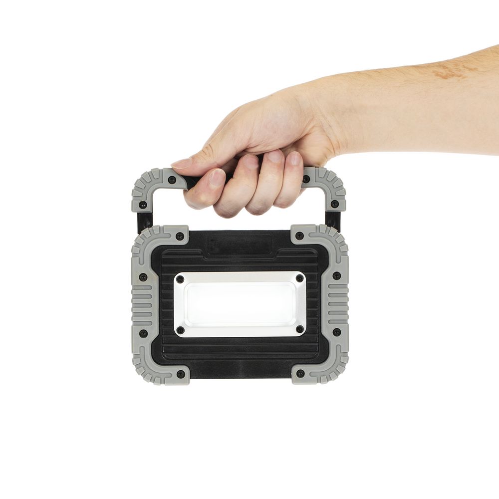 Мощный аккумуляторный фонарь для кемпинга, дачных выездов и строительных работ. Вращающаяся на 180° ручка позволяет зафиксировать фонарь в нужном положении. Встроенный аккумулятор имеет выход USB, который позволяет использовать фонарь в качестве источника питания для зарядки телефона.