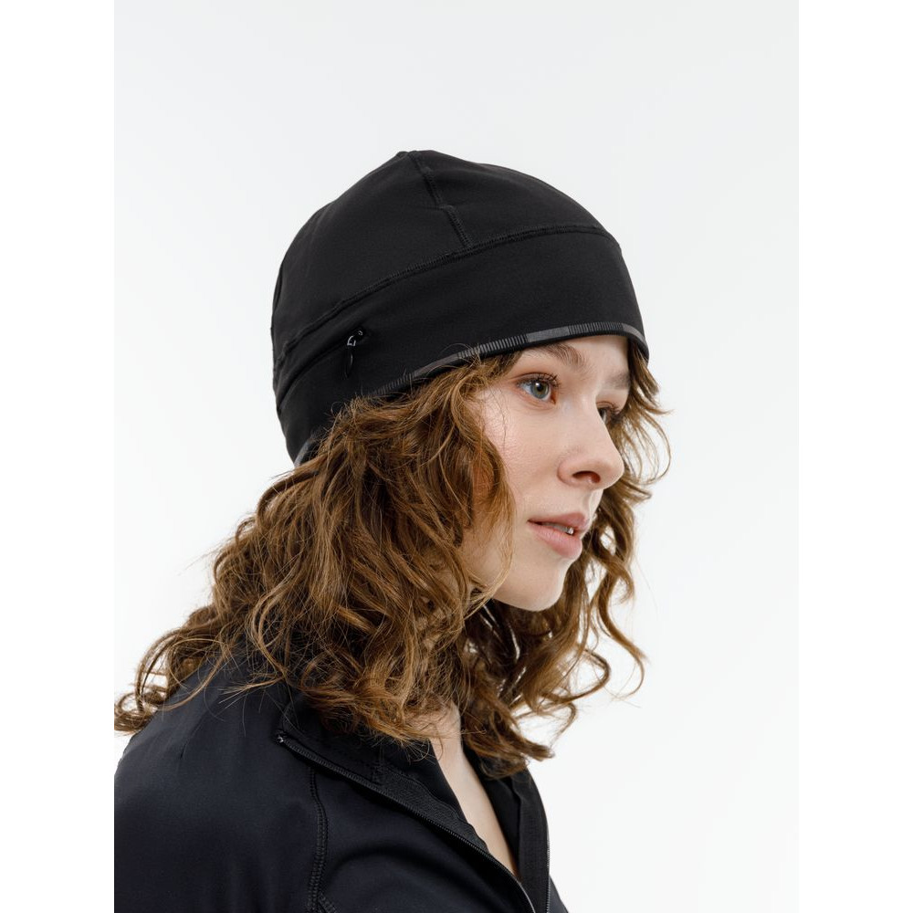 Шапка выполнена в черном цвете, но имеет светоотражающую полосу вдоль края, что улучшает видимость спортсмена в условиях плохой освещенности.