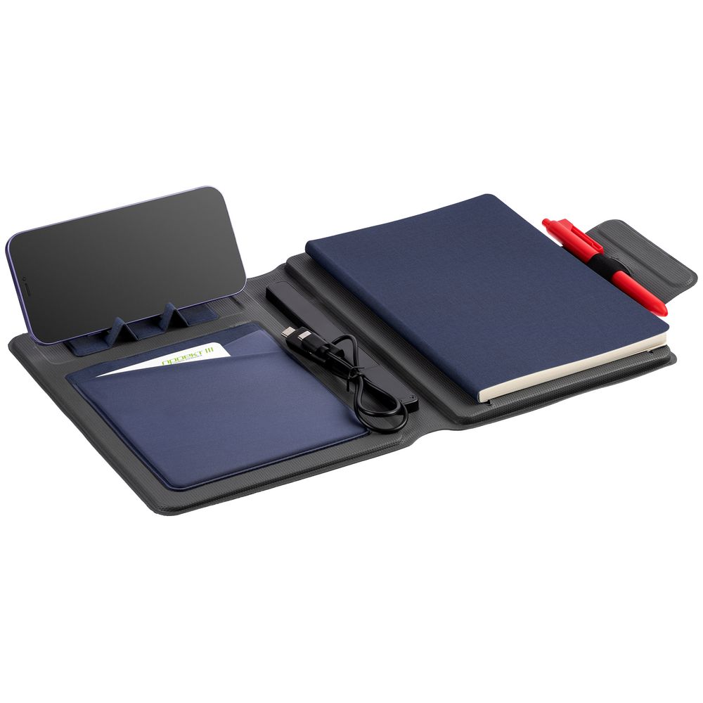 Органайзер с блокнотом и аккумулятором Oiro, синий