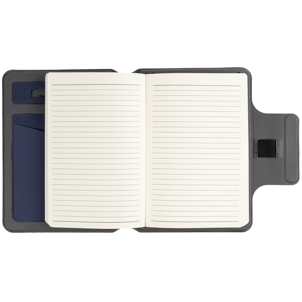 Органайзер с блокнотом и аккумулятором с беспроводной зарядкой. Обложка с фактурой, имитирующей ткань, на магнитной застежке.