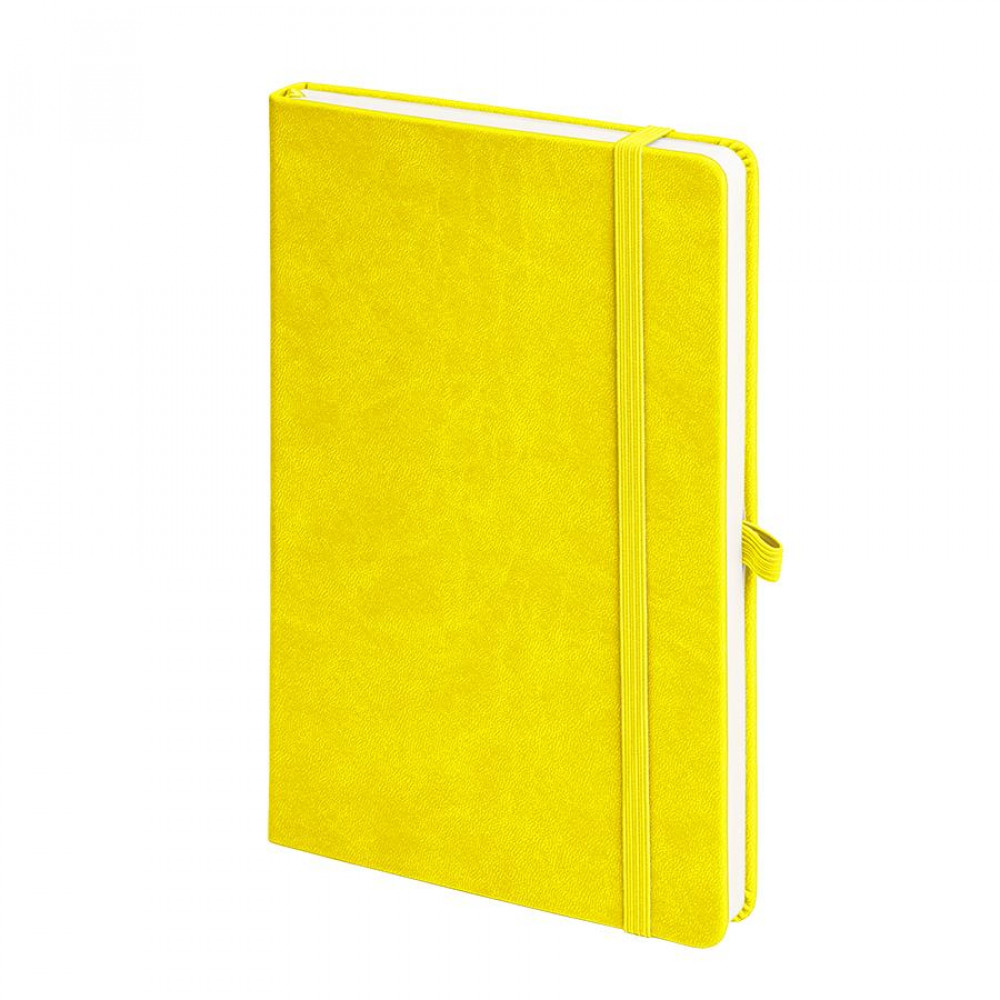 • Бизнес-блокнот "Justy", 130*210 мм, желтый, твердая обложка, резинка 7 мм, блок-линейка