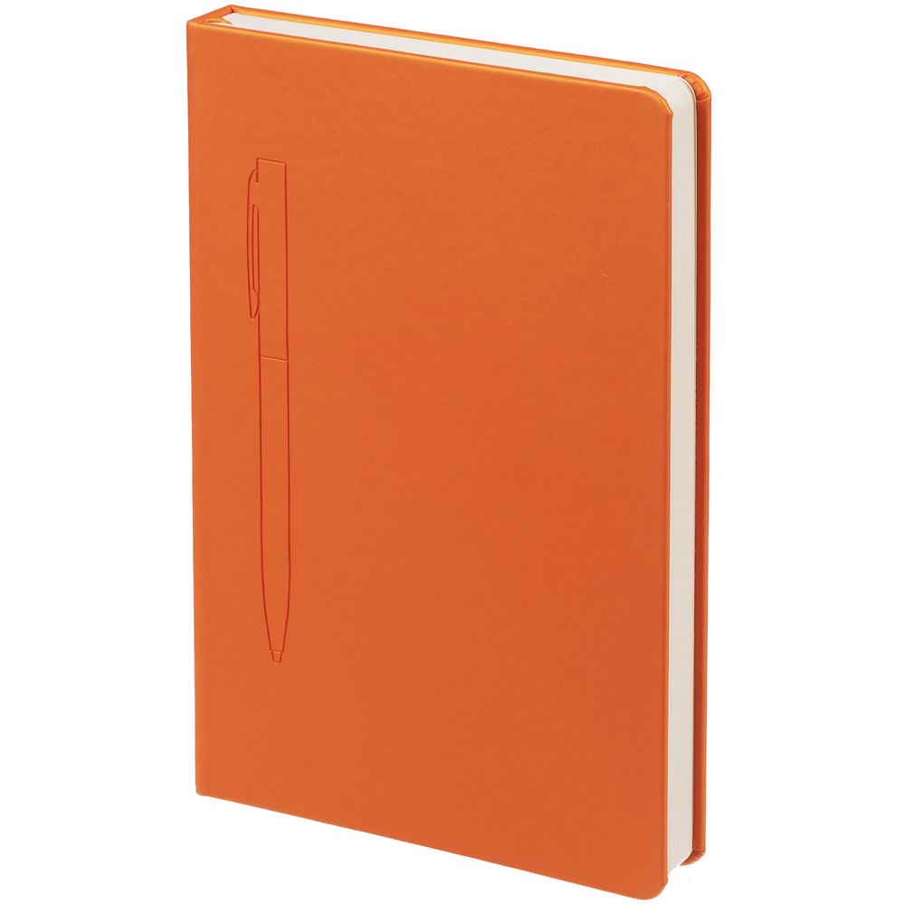 Ежедневник в твердой обложке с цветным ляссе и магнитом, удерживающим ручку.