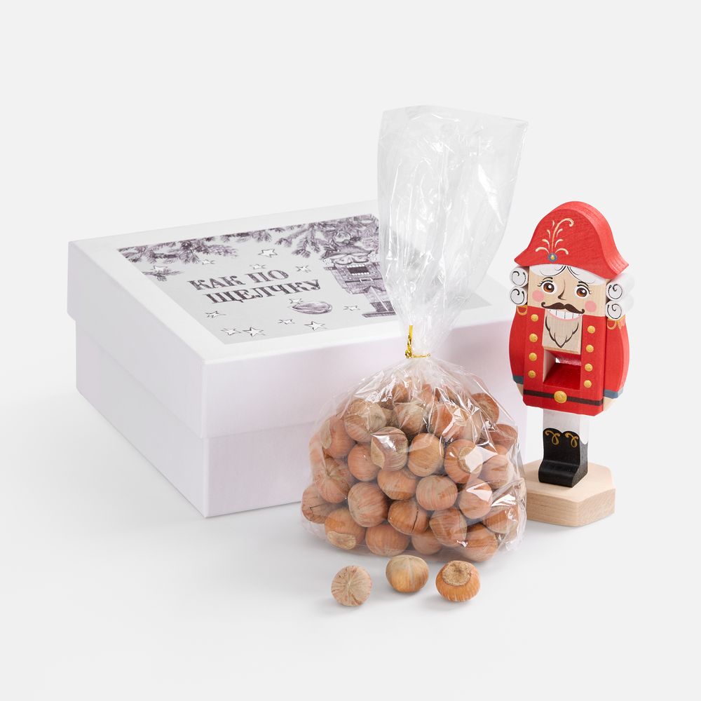 В комплекте: подарочная коробка, наполнитель, орехокол и орехи.
