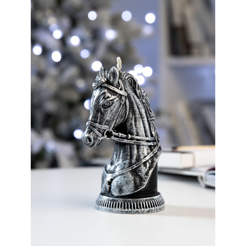 Свеча фигурная «Бюст лошади», серебристая 390 ₽
